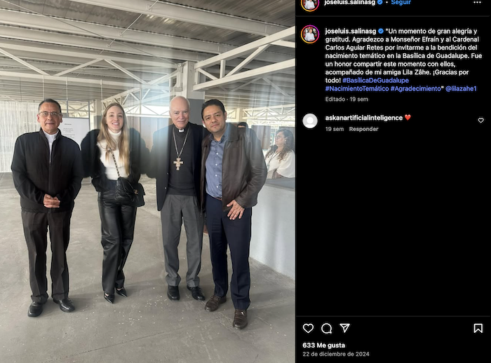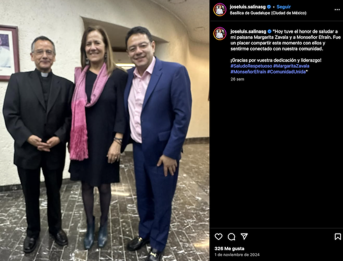 Sus relaciones se extiendien a la Iglesia católica: con fotos junto al Monseñor Efraín Hernández Díaz rector de la Basílica de Guadalupe, al Arzobispo Primado de México Carlos Aguiar Retes, e incluso llegó a destacar los encuentros que tuvo con el Papa Francisco.