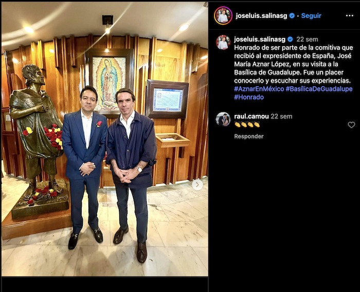 Incluso se ha reunido en la Basílica de Guadalupe con el expresidente de España, José María Aznar López, un hombre de derecha que se ha confrontado abiertamente con el obradorismo.
