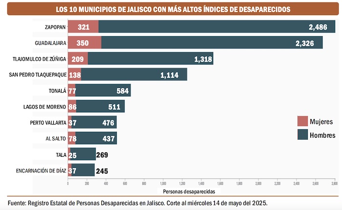 En el informe, difundido el pasado lunes 12 de mayo del 2025 se explica: “El pasado sábado 10 de mayo se publicó la actualización al mes de abril del Registro Estatal de Personas Desaparecidas en Jalisco (REPD). Los datos indican un alarmante incremento de jóvenes desaparecidos con edades entre 15 y 19 años que no están siendo localizados. La causa más probable de este ascenso es el reclutamiento forzado por parte del crimen organizado, que se aceleró desde el año pasado y parece seguir con la misma intensidad en los meses recientes, a pesar de los esfuerzos por controlar las centrales de autobuses, las campañas de difusión para alertar sobre empleos engañosos y las detenciones efectuadas a partir del hallazgo de dos centros de adiestramiento criminal en el municipio de Teuchitlán, Jalisco, ocurridas durante este lapso”.