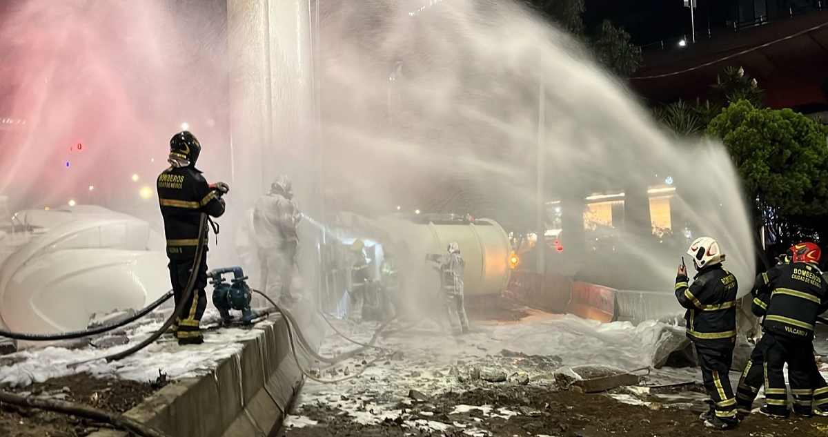 En seguimiento al servicio reportado en colonia Lomas de Chapultepec, en @AlcaldiaMHmx, informamos que se volcó una pipa con aproximadamente 31,000 litros de combustible; procedimos en coordinación con @SSC_CDMX @SGIRPC_CDMX y @Pemex evitar que llegara la gasolina al drenaje,… pic.twitter.com/CK9sWXX8pE