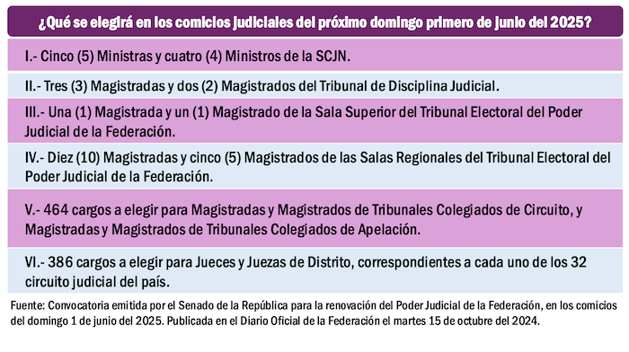 Ciudad de México, 26 de mayo (SinEmbargo).– Por primera vez, el pueblo podrá ejercer un nuevo derecho ciudadano y constitucional: la elección de Ministros de la Suprema Corte de Justicia de la Nación, de Magistrados del Tribunal de Disciplina Judicial, de Magistrados Electorales, de Magistrados de Circuito y de Jueces de Distrito, para romper el círculo de una estructura de justicia elitista que siempre ha privilegiado la atención y preservación de los derechos de una minoría privilegiada, con poder político, económico y religioso.