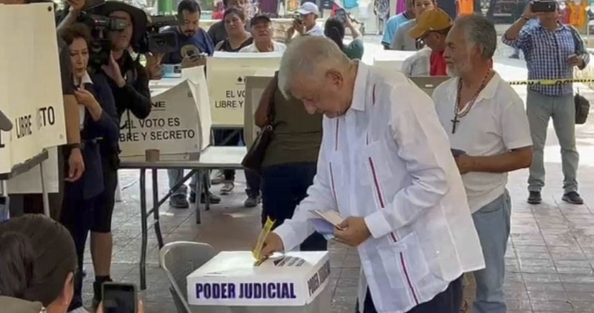 A las 9:50 horas, López Obrador se dio cita en una casilla especial para participar en este ejercicio inédito, el cual promovió para que la ciudadanía eligiera por primera vez a las y los integrantes del Poder Judicial de la Federación (PJF).