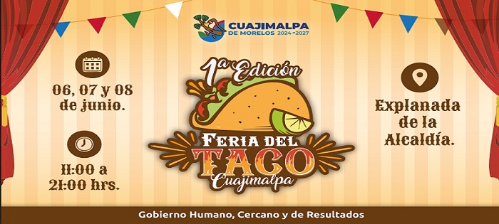 La primera edición de la Feria del Taco que se realiza en Cuajimalpa se realizará este 6,7 y 8 de junio en la explanada de la alcaldía, además de probar delicioso tacos como los de pastor, suadero, longaniza, suadero, entre otros, habrá música en vivo y presentaciones culturales y artísticas.