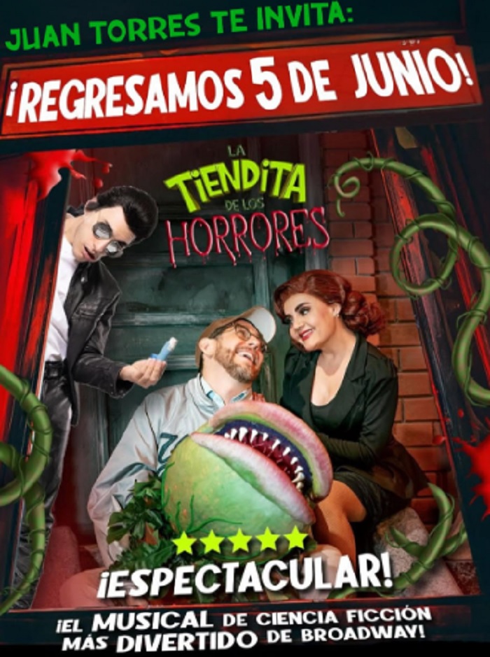 El Teatro Hidalgo recibe nuevamente a la puesta en escena La Tiendita de Los Horrores, que se presentará de jueves a domingo por 6 semanas. Esta obra musical nos cuenta cómo una planta muy maquiavélica quiere conquistar al mundo y convence al florista de ayudarla a lograr su cometido. Esta historia es una comedia para toda la familia.