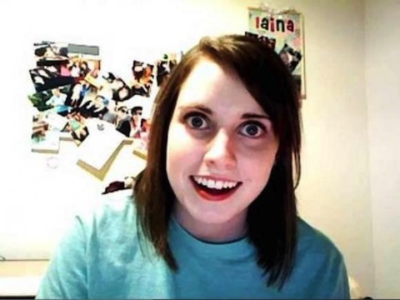 Laina Morris, alias "Overly Attached Girlfriend" (Novia extremadamente apegada) o, como se le conoce en México y el resto de Latinoamérica: La novia psicópata. Luego de aparecer en un video en YouTube, esta joven seguidora de Justin Bieber y su expresión atemorizante mientras cantaba para su ídolo causó furor, lo que le valió convertirse de manera involuntaria en la imagen para una serie de mensajes alusivos a la sobreprotección de pareja. Un tema bastante escalofriante para muchos durante el noviazgo que Morris con su mirada fija ejemplifica bastante bien.
