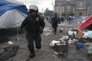 En 2013, en pleno sexenio de Enrique Peña Nieto (el priista que retornó al poder tras 12 años del PAN), y después de casi un mes de plantón en el Zócalo, se llevó a cabo una de las mayores represiones recientes contra un movimiento popular, cuando las fuerzas de la Policía Federal, apoyadas con tanquetas, desalojaron la plaza más grande del país con al menos 29 detenidos y 11 policías heridos.