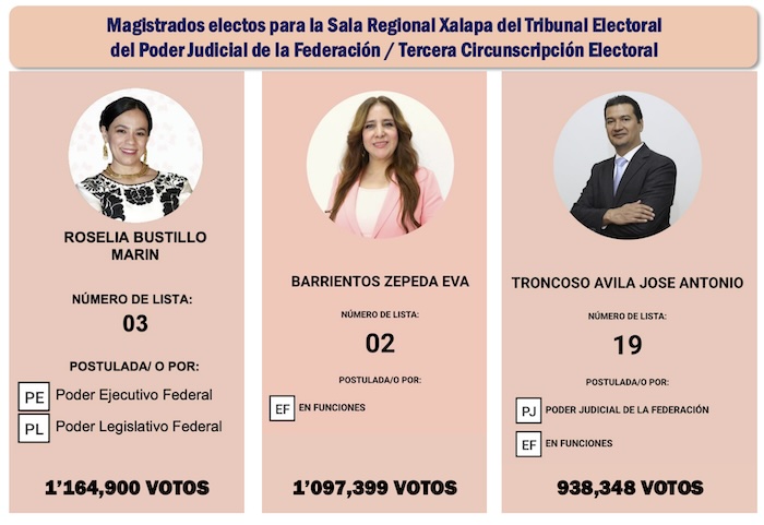 En la Tercera Circunscripción Electoral, que tiene por cabecera la Sala Regional Xalapa, del Tribunal Electoral del Poder Judicial de la Federación, la candidata ganadora, Roselia Bustillo Marín, que llegó a la boleta postulada por los poderes Ejecutivo y Legislativo, logró la votación más alta del país: 1 millón 164 mil 900 votos, cuando ya se habían sumado el 98.67 por ciento de las actas.