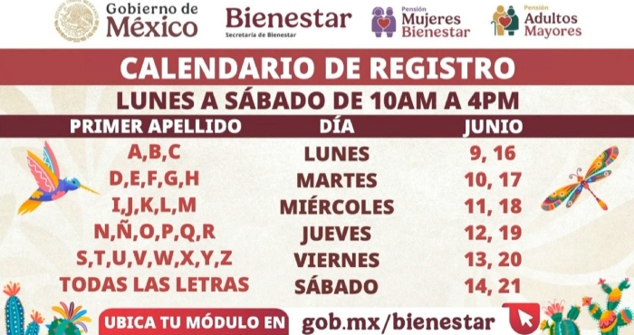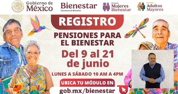 La titular de la dependencia, Ariadna Montiel Reyes, informó que del 9 al 21 de junio, ambos grupos de la población pueden inscribirse para recibir su respectiva pensión.