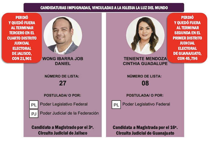Quien no alcanzó un lugar como magistrado en el nuevo Poder Judicial de la Federación fue Job Daniel Ibarra Wong, candidato a magistrado en materia laboral en el Tercer Circuito de Jalisco, a quien se le señala de ser ministro de culto de la iglesia La Luz del Mundo. “La Constitución mexicana impide a los líderes de culto ser votados y ocupar puestos públicos. Wong ha negado ejercer un cargo de dirección en la iglesia, pero las víctimas de Naasón Joaquín, llamado por sus fieles Apóstol de Jesucristo, han adjuntado en su recurso [de impugnación ante el INE] publicaciones de redes sociales que confirman la intensa actividad religiosa del candidato”, señaló el diario El País en su publicación del martes 25 de marzo del 2025.