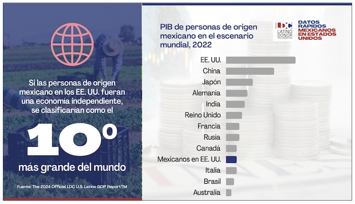 En 2022, el Producto Interno Bruto latino de Estados Unidos alcanzó los 3.6 billones de dólares, situándose como la quinta economía más grande del mundo, superando a India, el Reino Unido y Francia. Este crecimiento refleja la continua trayectoria ascendente de la población latina en Estados Unidos.