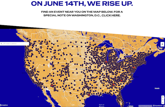 Los eventos principales están programados para Atlanta, Chicago, Houston, Nueva York, Phoenix, Filadelfia y Charlotte, Carolina del Norte. Pero también hay protestas planeadas en comunidades más pequeñas como Lewisburg, Virginia Occidental; Pinedale, Wyoming; y Moab, Utah. Filadelfia, una ciudad con una rica historia revolucionaria, será la sede de la transmisión nacional en vivo del evento, según Leah Greenberg, cofundadora de Indivisible y una de las organizadoras de las manifestaciones, en línea con sus esfuerzos por presentar las protestas como una oposición pacífica y patriótica.