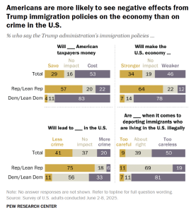 El Centro de investigaciones Pew realizó la encuesta del 2 al 8 de junio, en el inicio de las redadas masivas y antes de los disturbios en Los Ángeles y el envío de marinos por parte de Trump. Estas opiniones podrían cambiar en los próximos meses de acuerdo con la intensidad de estos operativos, ya que hay denuncias de que los agentes de ICE realizan estas capturas vestidos de civil, sin mostrar las órdenes de aprehensión, con las caras cubiertas e incluso la detención indiscriminada de ciudadanos estadounidenses y migrantes "con papeles" y sin antecedentes criminales.