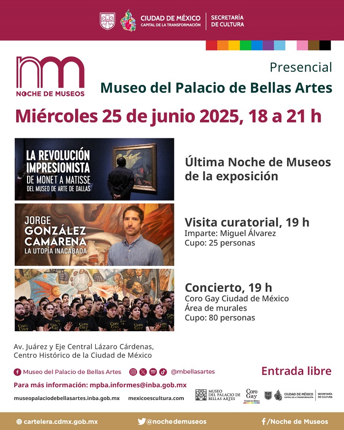 El Museo del Palacio de Bellas Artes es un lugar hermoso que cuenta con destacadas exposiciones, como "La revolución impresionista", además contará con la presentación del Coro Gay Ciudad de México.