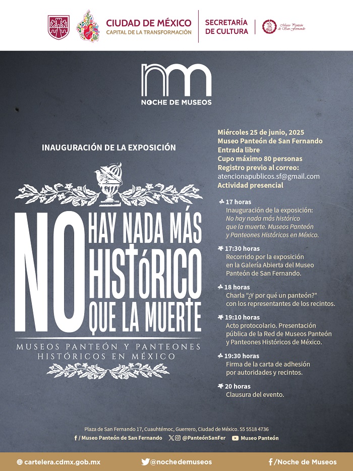El programa de esta Noche de Museos es “No hay nada más histórico que la muerte” en el que se incluye la inauguración de una exposición y presentación de una nueva “Red”.