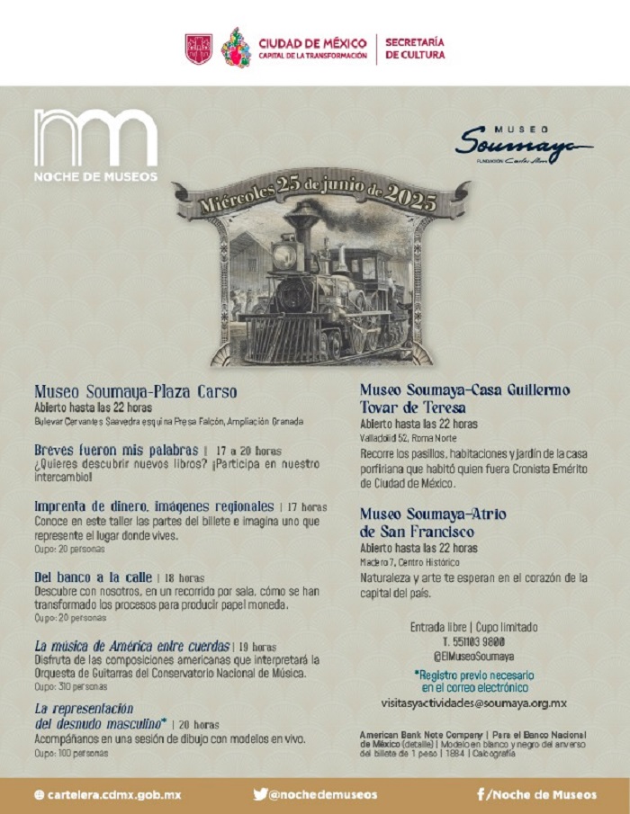 El Museo Soumaya, ubicado en Plaza Carso tendrá varias actividades relacionadas a la economía, además de un concierto de cuerdas. Entre las actividades se encuentran: