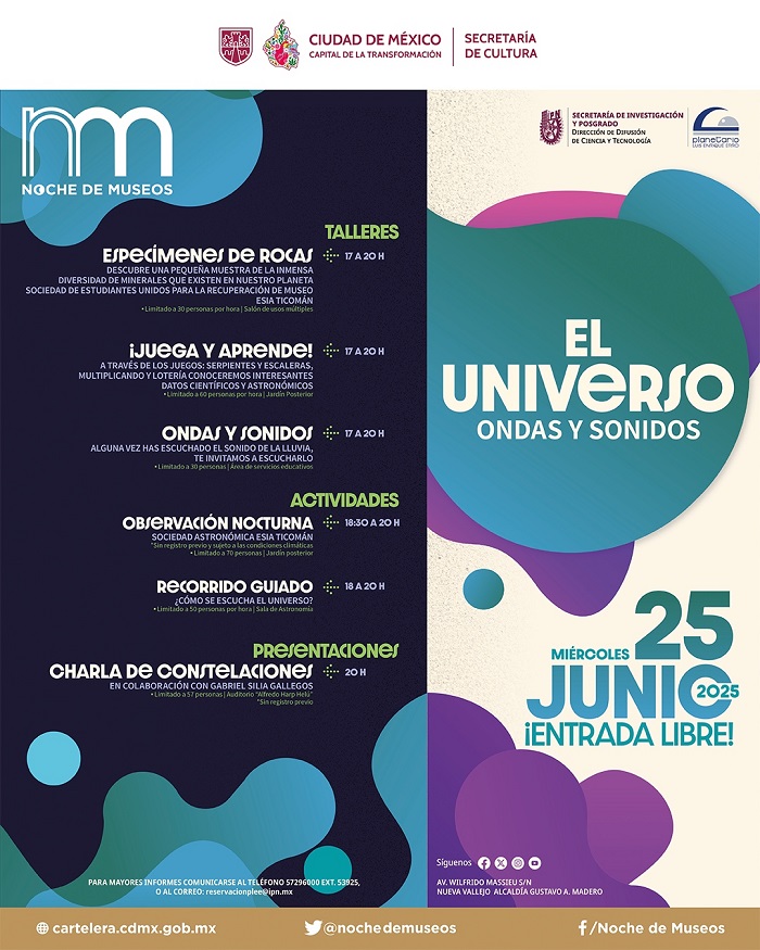 Ciudad de México, 22 de junio (SinEmbargo).- Este miércoles 25 se realizará la Noche de Museos de junio por lo que te compartimos una lista de algunas actividades que se realizarán para que no te pierdas esta jornada cultural y disfrutes de lo que ofrece la Ciudad de México.