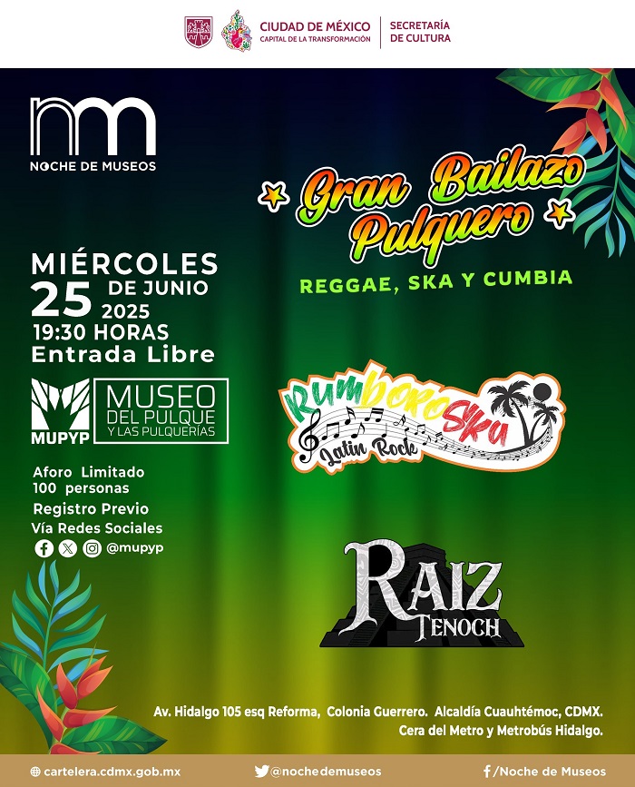 El Museo del Pulque y las Pulquerías prepara una gran noche para sacar brillo a la pista con reggae, ska y cumbia, una actividad imperdible para quienes gustan de la música y de bailar.