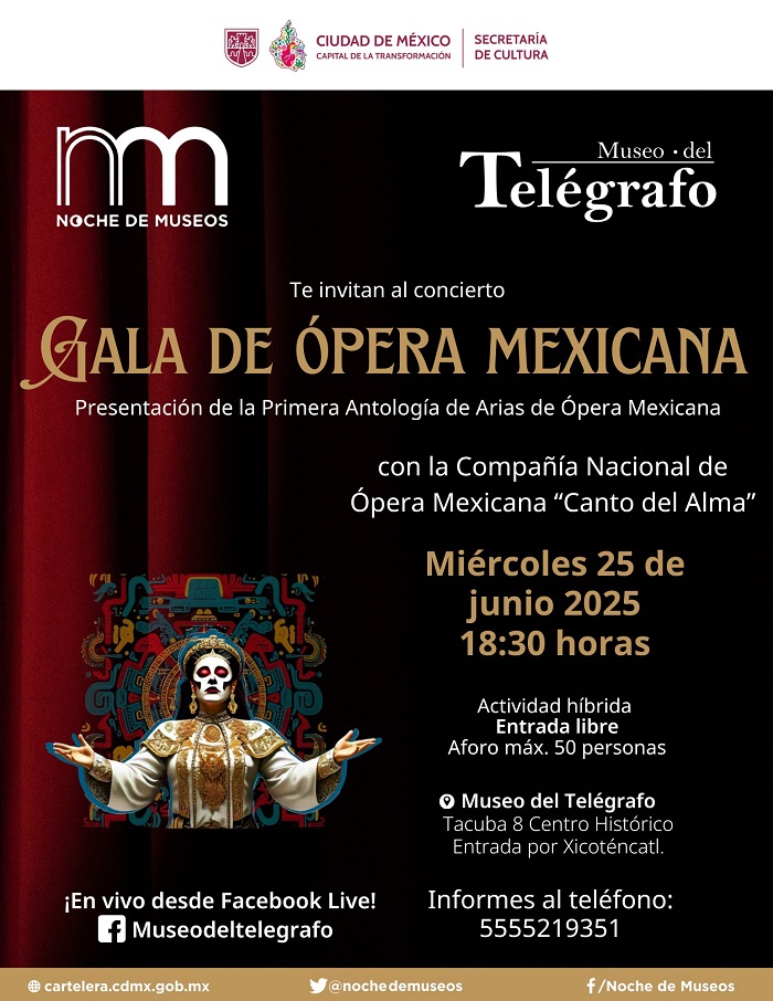 El Museo del Telégrafo presentará una Gala de ópera con Arias mexicanas, lo mejor es que tendrá transmisión en línea desde Facebook Live.