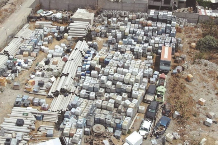 Imagen aérea de predios asegurados en los que se almacenaban cientos de contenedores de mil litros cada uno con combustible del ducto de Tuxpan-Azcapotzalco de Pemex. Foto: Cuartoscuro