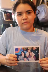 “Mi mamá me dijo que la querían hacer que firmara su salida voluntaria y ella les dijo que no, que quería ver a un juez y a un abogado; la volvieron a subir a la camioneta, se la llevaron y la encerraron en una bodega con otras 100 personas, pero no sabe dónde está esa bodega”, narró Angeline.