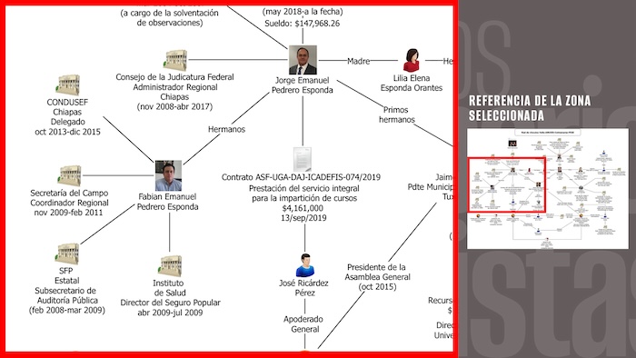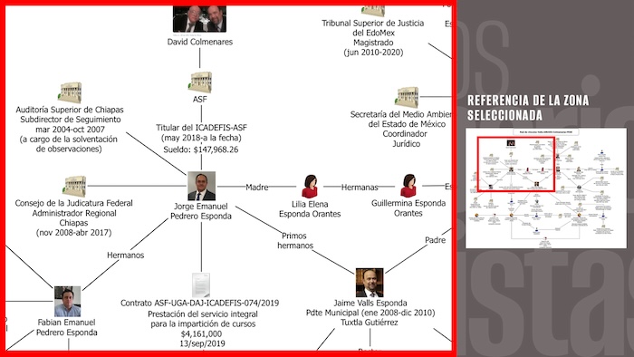 Prosigo el relato. Su bonanza llegó junto con Colmenares, y desde los primeros días Jaime Valls Esponda se apareció con un primo hermano suyo llamado Jorge Emanuel Pedrero Esponda, que fue nombrado desde mayo de 2018 titular del Instituto de Capacitación y Desarrollo en Fiscalización Superior (Icadefis) en la asf, con un sueldo mensual de 147 968 pesos con 26 centavos. Este a su vez colocó en posiciones relevantes a sus parientes políticos y a personas sin perfil para los cargos. Así, aparecen en nómina Lenny de Regules Bárcena, en la subdirección de Control e Informes; la dirección de Desarrollo, desde octubre de 2020, está a cargo de Hugo Tulio Félix Clímaco, quien entre otras cosas fue representante del gobierno de Oaxaca en la Ciudad de México, de noviembre de 2013 a noviembre de 2016, y también director general de Coordinación Regional de la Autoridad Federal para el Desarrollo de Zonas Económicas Especiales de la Secretaría de Hacienda entre enero y agosto de 2017, nombrado por Colmenares. Por cierto, entre febrero y agosto de 2019, fue el “suertudo” subsecretario de Control y Auditoría en el gobierno de Puebla, señalado en una denuncia presentada en la Contraloría del estado como presunto involucrado en la contratación de presuntas empresas fachada oaxaqueñas.