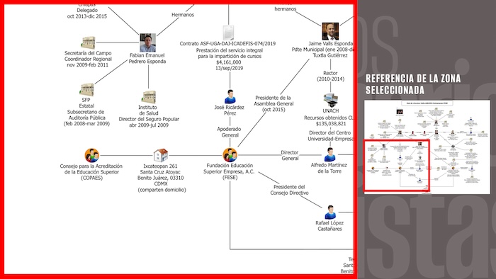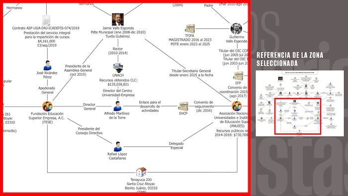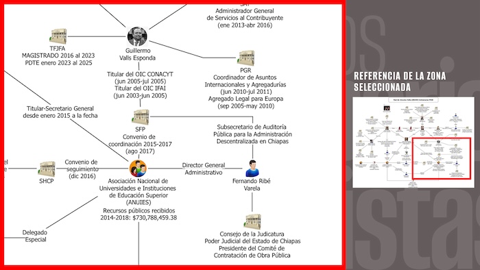 Algunos de esos acuerdos son más reveladores, como el convenio de coordinación 2015-2017 que firmó la ANUIES con la Secretaría de la Función Pública, en el que participó el subsecretario de Auditoría Pública para la Administración Descentralizada en Chiapas, Fernando Ribé Varela, que luego se convirtió en presidente del Comité de Contratación de Obra Pública en el Consejo de la Judicatura del Poder Judicial de Chiapas. Desde 2015 ya fungía como director general administrativo y apoderado legal de la ANUIES.