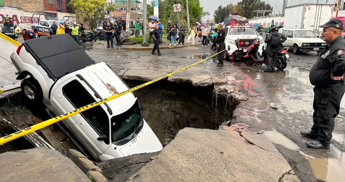 En redes sociales, vecinos de la zona compartieron videos y fotografías del incidente, en los que observa a, por lo menos, tres vehículos afectados por el hoyo que se abrió en el asfalto.