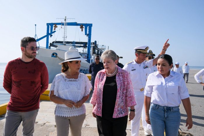 Por otra parte, a bordo del buque Natans, la Secretaria Alicia Bárcena destacó que el trabajo extraordinario hecho en Quintana Roo sobre el control de sargazo tiene un ciclo completo, desde el centro de monitoreo hasta la recolección en las playas.