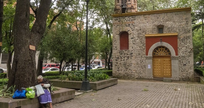 A la vez, el propio Regente de Hierro consumó el postergado traslado de los restos de los difuntos enterrados en el cementerio que asistía en el atrio de la propia capilla, para ser trasladados al Panteón de Guadalupe, en Mixcoac. El área desalojada fue entonces incorporada al parque original, al que se agregó luego la parte liberada de la ciudad perdida y con el cierre de una cuadra de la calle Tejocotes se unificó en un sólo jardín. Frente a éste se edificó un nuevo templo, moderno, dedicado a Santa Mónica, de los Agustinos Recoletos.