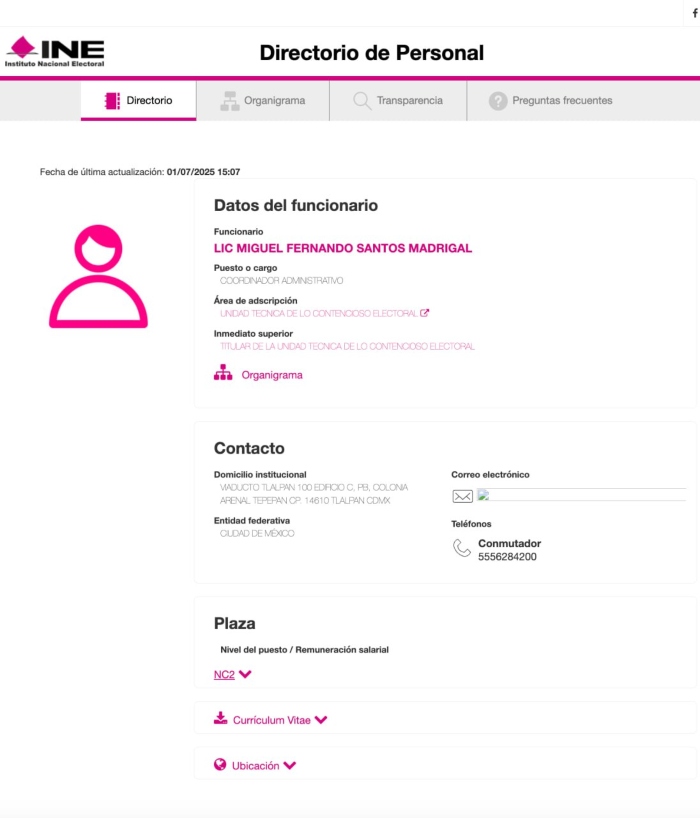 Santos Madrigal, también allegado al equipo priista de Manlio Fabio Beltrones, se mantiene como coordinador administrativo de la unidad del INE que encabezaba Patlán Matehuala —quien fue designado por la Consejera presidenta, Guadalupe Taddei—, pero hace 16 años fue acusado de corrupción cuando era director ejecutivo de Administración del extinto Instituto Federal Electoral (IFE), presidido por Leonardo Valdés Zurita.