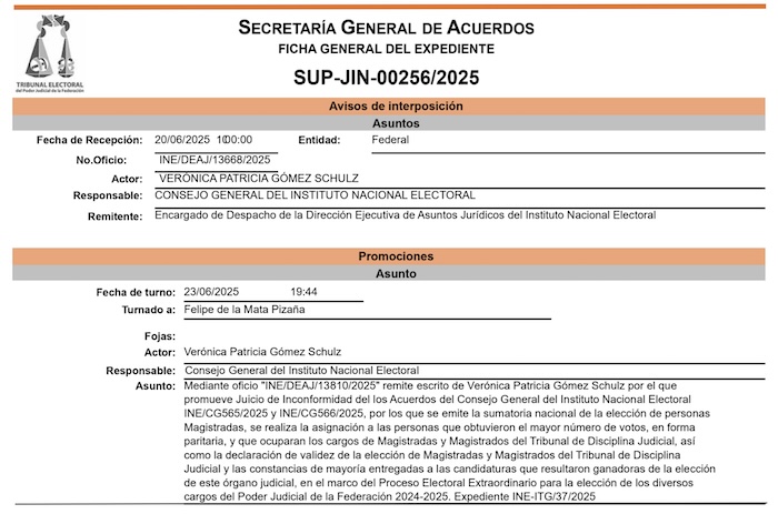 Ciudad de México, 25 de agosto (SinEmbargo).- El Magistrado electoral Felipe de la Mata Pizaña publicó el pasado sábado 23 de agosto del 2025 un proyecto de sentencia en el que propone la declaración de validez, la asignación y la entrega de las constancias de mayoría a los magistrados electos del Tribunal de Disciplina Judicial, al considerar infundados e inoperantes los argumentos en la promoción de un Juicio de Inconformidad formulado por Verónica Patricia Gómez Schulz, aspirante a ese nuevo cuerpo colegiado, quien pide la nulidad de los comicios.