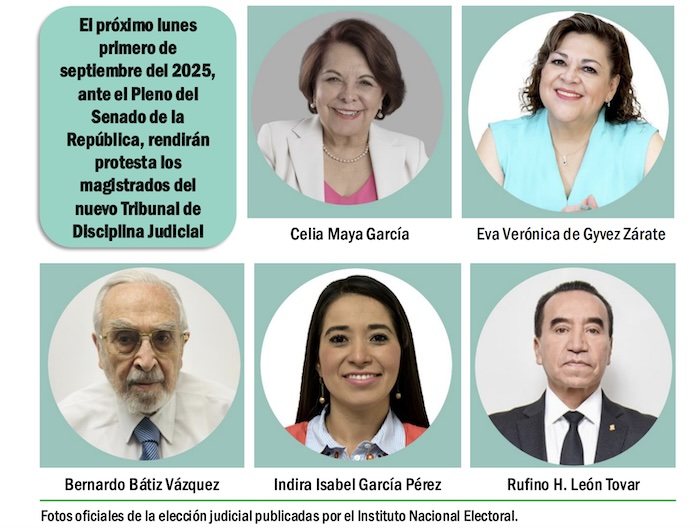 Los magistrados del nuevo Tribunal de Disciplina Judicial rendirán protesta ante el Senado de la República el próximo lunes primero de septiembre del 2025.