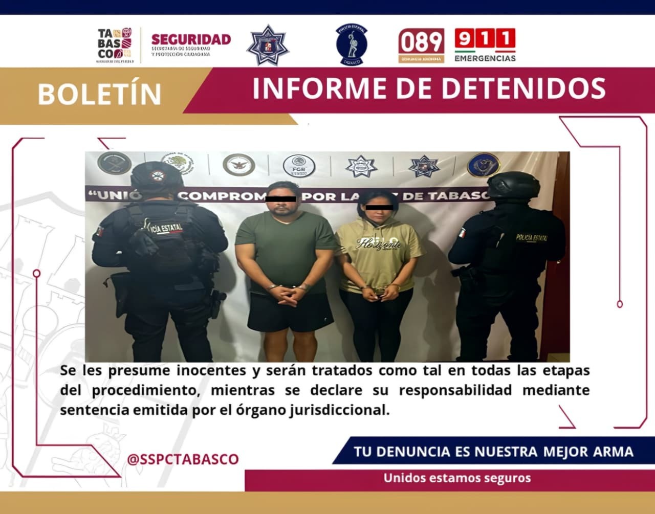 Humberto "N", alias "Beto Coca", identificado como jefe de plaza y operador financiero de La Barredora fue detenido en Centla, Tabasco, junto con su pareja, Irasema "N", alias "La Señora".