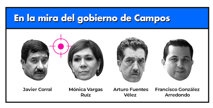 A la par del discurso oficial están los procesos penales y administrativos que el Gobierno de Maru Campos ha iniciado en contra de personajes clave en las investigaciones de la corrupción duartista, como el exgobernador Javier Corral; la exsecretaria de la Función Pública, Mónica Vargas; el exsecretario de Hacienda, Arturo Fuentes Vélez y el exfiscal Francisco González Arredondo.