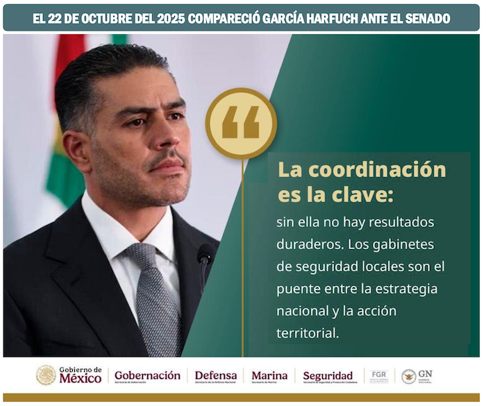 Como se puede observar, jurídicamente y en términos de las facultades delegadas por la presidenta Claudia Sheinbaum Pardo, el secretario de Seguridad, Omar García Harfuch, lleva sobre sus espaldas el peso de la seguridad preventiva, del combate al crimen organizado, de la investigación de la delincuencia de cuello blanco y además, debe estar atento a contingencias que pudieran poner en riesgo la seguridad nacional, con todo el apoyo de la Fiscalía General de la República y de la Fuerza Armada Permanente.
