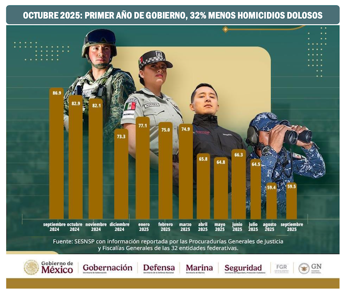 El Secretario de Seguridad y Protección Ciudadana, Omar García Harfuch, concentra una elevada cuota de poder en el gobierno federal, con el respaldo total de la Presidenta Claudia Sheinbaum Pardo y la Fuerza Armada Permanente, abarcando la Seguridad Pública preventiva, la investigación criminal y el combate al crimen organizado y la delincuencia de cuello blanco.