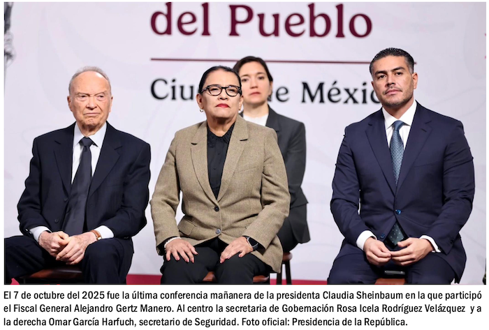 Se presumiría que las tareas de García Harfuch serán más eficaces con la llegada de Ernestina Godoy Ramos como encarga de la Fiscalía General de la República (FGR), con quien ha tenido una eficaz coordinación desde que ambos colaboraron en el Gobierno de la Ciudad de México, en tareas similares, con la ahora Presidenta de la República.