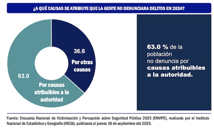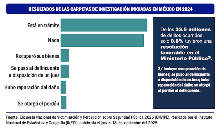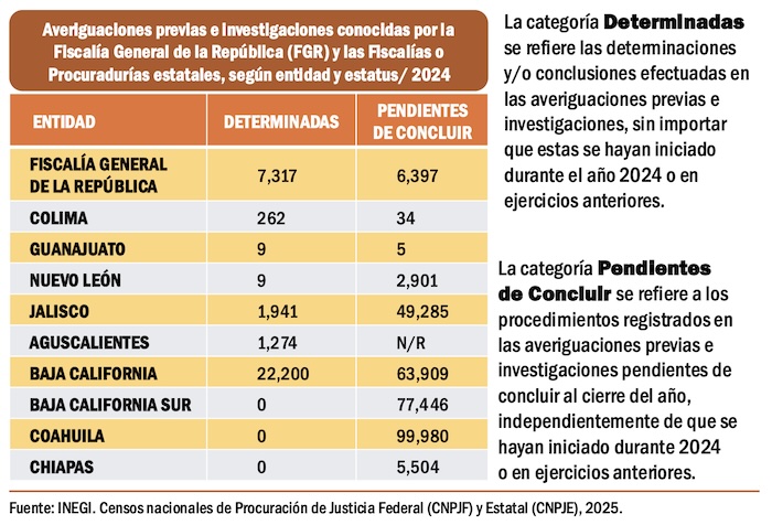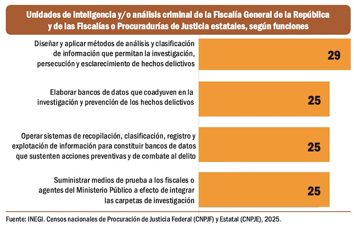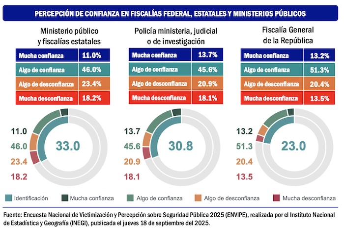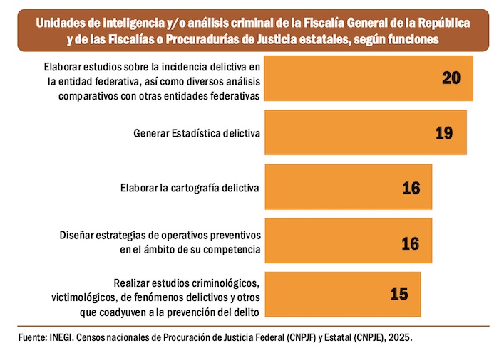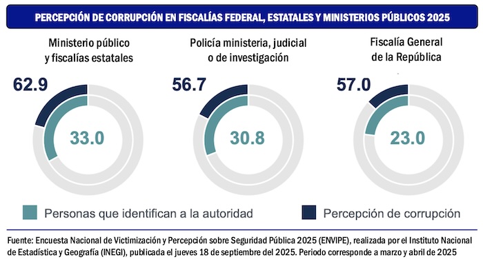 La información que proporcionan la Encuesta Nacional de Victimización y Percepción sobre Seguridad Pública 2025 del Instituto Nacional de Estadística y Geografía y el informe Percepciones de Impunidad 2025, elaborado por la organización Impunidad Cero, una institución académica que analiza el desempeño de la procuración de justicia en México, concluyen que las fiscalías estatales requieren más trabajo de inteligencia y más coordinación con la Fiscalía General de la República.