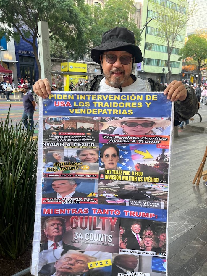 “Mientras los traidores a la Patria piden la intervención de Donald Trump, del otro lado podemos ver que es un delincuente; mientras ellos piden la intervención, nosotros estamos luchando por construir un país mejor. Se equivocan esos que piden la intervención porque quiénes serían los primeros en caer: los ultras”, afirmó Arturo, simpatizante de la izquierda desde hace décadas, a la altura de la Alameda en Avenida Juárez. Y agregó sobre la Presidenta Sheinbaum a poco más de su primer año de Gobierno: “sin insultos, sin enojarse, ha logrado todo lo que ha pensado”.