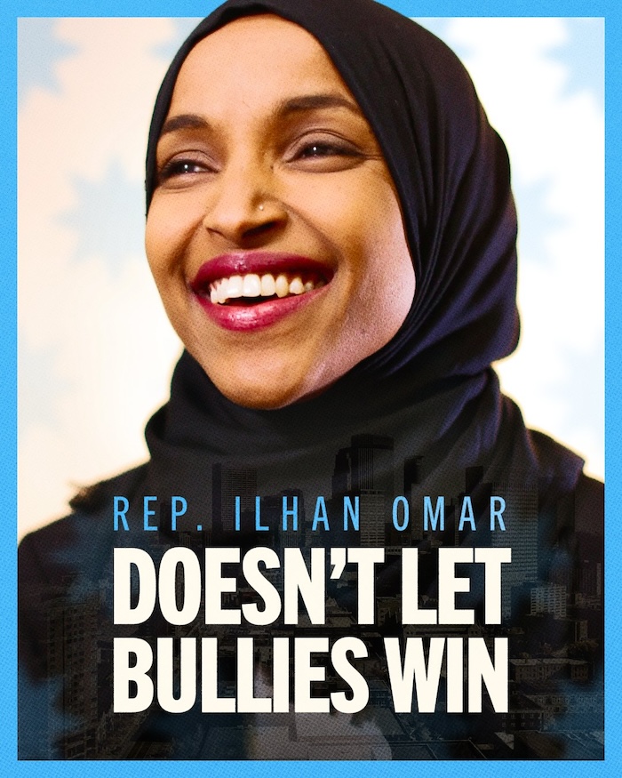 Omar representa desde 2019 el quinto distrito congresional de Minnesota y es la primera mujer musulmana y de origen somalí en la Cámara de Representantes. Nació en Mogadiscio, Somalia, y llegó a Estados Unidos como refugiada tras huir con su familia de la guerra civil. Pasaron cuatro años en un campo de refugiados en Kenia antes de obtener asilo en 1995 y establecerse en Minneapolis, cuando ella tenía 13 años.