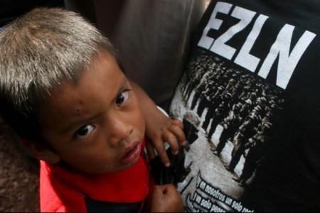 Un nio juega mientras el Sub Comandante Insurgente Marcos, Delegado Zero para La Otra Campaa se reune con miembros del Movimiento de Unificacion de la Lucha Triqui. FOTO: Moyss Ziga Santiago/CUARTOSCURO.COM