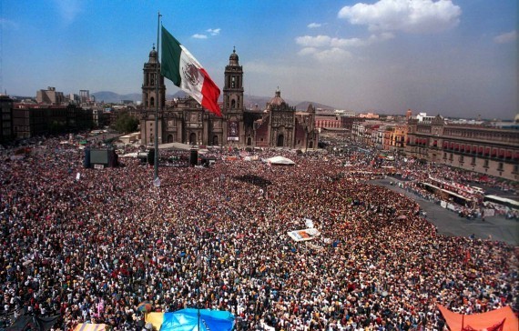 MEXDF11MAR2001. Tumultuosa vienvenida se le dio al subcomandante Marcos y la comandancia del EZLN a su llegada al zocalo de la ciudad de Mexico, ultimo punto de la marcha zapatista. Foto: Christian Palma/CUARTOSCURO.COM