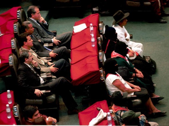 MEXDF28MAR2001.- El recinto de San Lzaro recibio esta maana a los 23 comandante del EZLN, los cuales pudieron utilizar la maxima tribuna del pas.