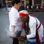 Mario “lobo” se aplica. El color de su piel, la larga melena, el vientre plano y atuendo azteca, lo hacen parecer una estatua de bronce. Atrapa la atención de los caminantes, especialmente de los extranjeros, quienes por momentos se detienen a mirar cómo ahuma, moja, toca y aprieta el cuerpo de los que se ponen en sus manos.