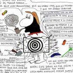 Con líneas y cartelitos va describiendo de puño y letra cada parte del dibujo.