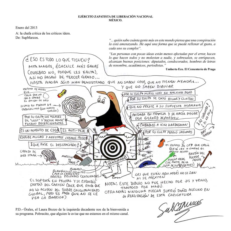 Ciudad de México, 9 ene (dpa) - El "subcomandante Marcos", líder de la guerrilla zapatista mexicana, mostró sus dotes de caricaturista en una "carta gráfica" para sus críticos, en la que incluyó desde el Balón de Oro de Lionel Messi y hasta el cambio de nacionalidad del actor Gérard Depardieu.