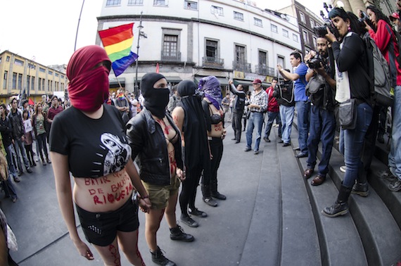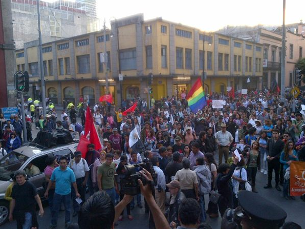 Durante su trayecto los manifestantes hicieron una escala en la Asamblea Legislativa del Distrito Federal (ALDF) donde pidieron esclarecer las detenciones que, afirman, fueron arbitrarias el pasado 1 de diciembre, por lo que es necesario investigar a los policías que participaron en el operativo.
