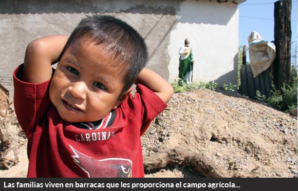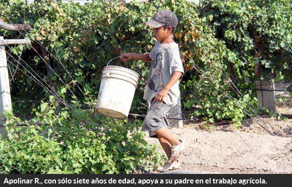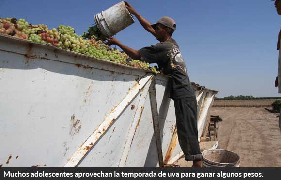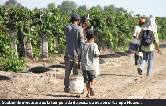 Como Juana y su pareja, son muchos los jornaleros que llegan a los viñedos y sembradíos de hortalizas a probar suerte, la mayoría son migrantes temporales, otros echan raíces, se casan y tienen hijos, como don Apolinar, quien carece de mejoría en su situación y cuyo hijo, Apolinar R. sigue los pasos de su padre muy de cerca; en edad escolar, camina cubeta en mano para llenarla con uva de mesa, todo por 1.50 pesos.