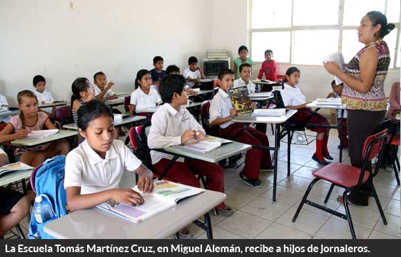 Olga Lidia Ortega, directora de la escuela, explica que al plantel asisten al turno matutino 325 niños de la etnia mixteca, triqui, mayos y zapoteca y que hace año y medio hay más asistencia en quinto y sexto grado –los más susceptibles de faltas por causa de trabajo infantil–.