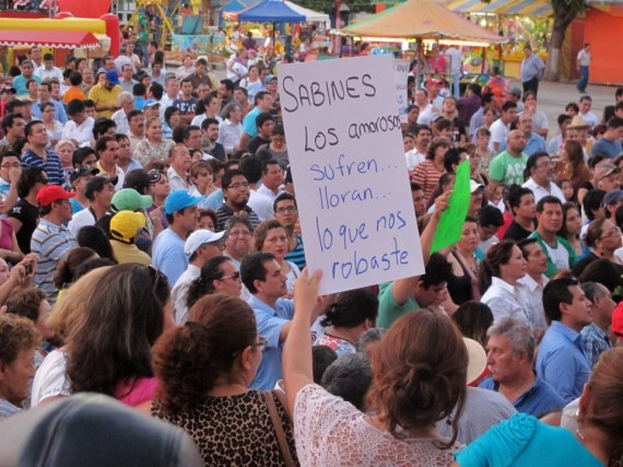 “Ahora le toca a Manuel Velasco demostrar que no le temblará la mano al castigar a los culpables de endeudamiento en Chiapas, aunque tenga que encarcelar a Juan Sabines”, decían los manifestantes a la prensa.